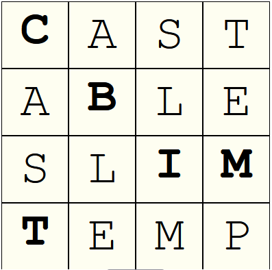 A Wordle-like game where you fill in a square that's read the same row by row as column by column. Press "Last Square" to play previous challenges!
